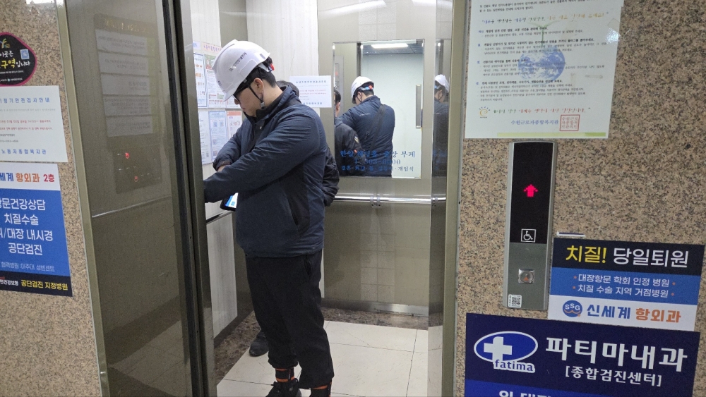 ![]() ![]() ![]() ![]() ![]() - 수원시노동자종합복지관 승강기 정기검사 - " 승강기안전관리법 제28조 및 제32조"로 정한 규정에 따라 승강기 정기검사를 시행합니다. 1. 일 시 : 2026.1.2(금) 14:00~14:50 2. 내 용 : 승강기 안전 운행에 필수적인 기계,전기,안전장치의 상태 점검 (승강로 및 카, 구동기, 제동장치, 안전장치, 및 인버터 점검) 3. 업 체 : (주)승강기안전기술연구원 4. 결 과 : 조건부합격(피트실 내 전등 점멸) 전등교환 후 합격 처리 ** 위 내용으로 승강기 정기검사를 실시하였습니다.